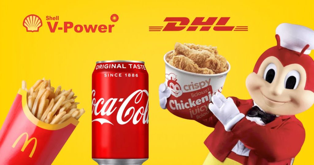 Các thương hiệu thể hiện phẩm chất của màu đỏ là hướng ngoại và tràn đầy năng lượng như Coca Cola, Air Asia, VietJet. Hay các ví dụ thực tiễn khác từ ngành F&B, màu đỏ được sử dụng bởi hầu hết các hãng thức ăn nhanh như Mc Donald’s, KFC, Lotteria, Jollibee, Popyes.